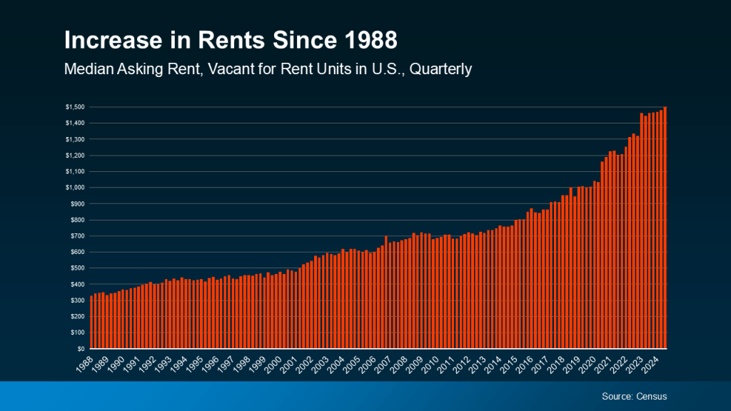 While renting may seem easier in the short term, it comes with rising costs. According to Census data, rents have consistently increased over the decades (see graph below).
